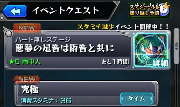 ☆5モンスターの雨中人がドロップする☆5制限クエスト「悪夢の足音は雨音と共に」、この記事では極・究極のうち究極の攻略方法やオススメモンスターについて書いていきたいと思います。