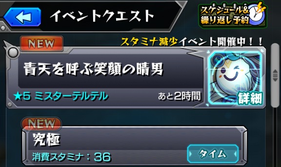 ☆5モンスターのミスターテルテルがドロップするクエスト「晴天を呼ぶ笑顔の晴男」、この記事では極・究極のうち究極の攻略方法やオススメモンスターについて書いていきたいと思います。