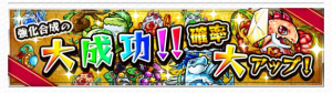 期間中はキャラの強化合成時に発生する「大成功」確率がUPします。