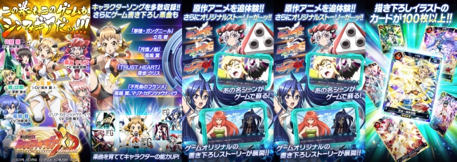 描き下ろしイラスト100枚以上!原作のド派手なバトル演出や戦況を盛り上げるキャラクターソングを多数収録!ファンだけではなく誰でも手軽に楽しめるゲームです。