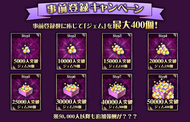 事前登録キャンペーンサイトよりご登録またはフォローするだけで、アプリ配信開始時に登録数に応じて最大400個(約4,800円相当)のゲームに役立つアイテムをもれなく全員にプレゼントいたします。