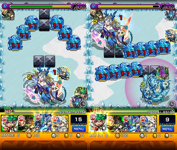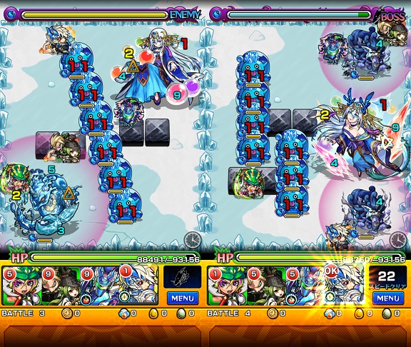 ボス戦でも優先して反射制限から倒したいところですが、このステージは1ターンでの全滅が難しい配置となっています。