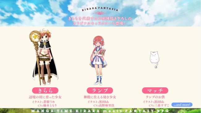 芳文社が発刊している雑誌「まんがタイムきらら」シリーズ5誌より、アニメ化も果たしている8つ以上の超人気作品が、ファンタジー世界で冒険に挑みます。